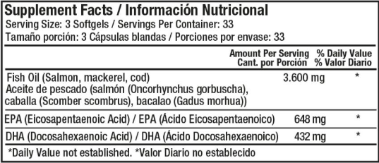 - Aceite de pescado concentrado (Fish Oil): [indicar mg según etiqueta del frasco]
